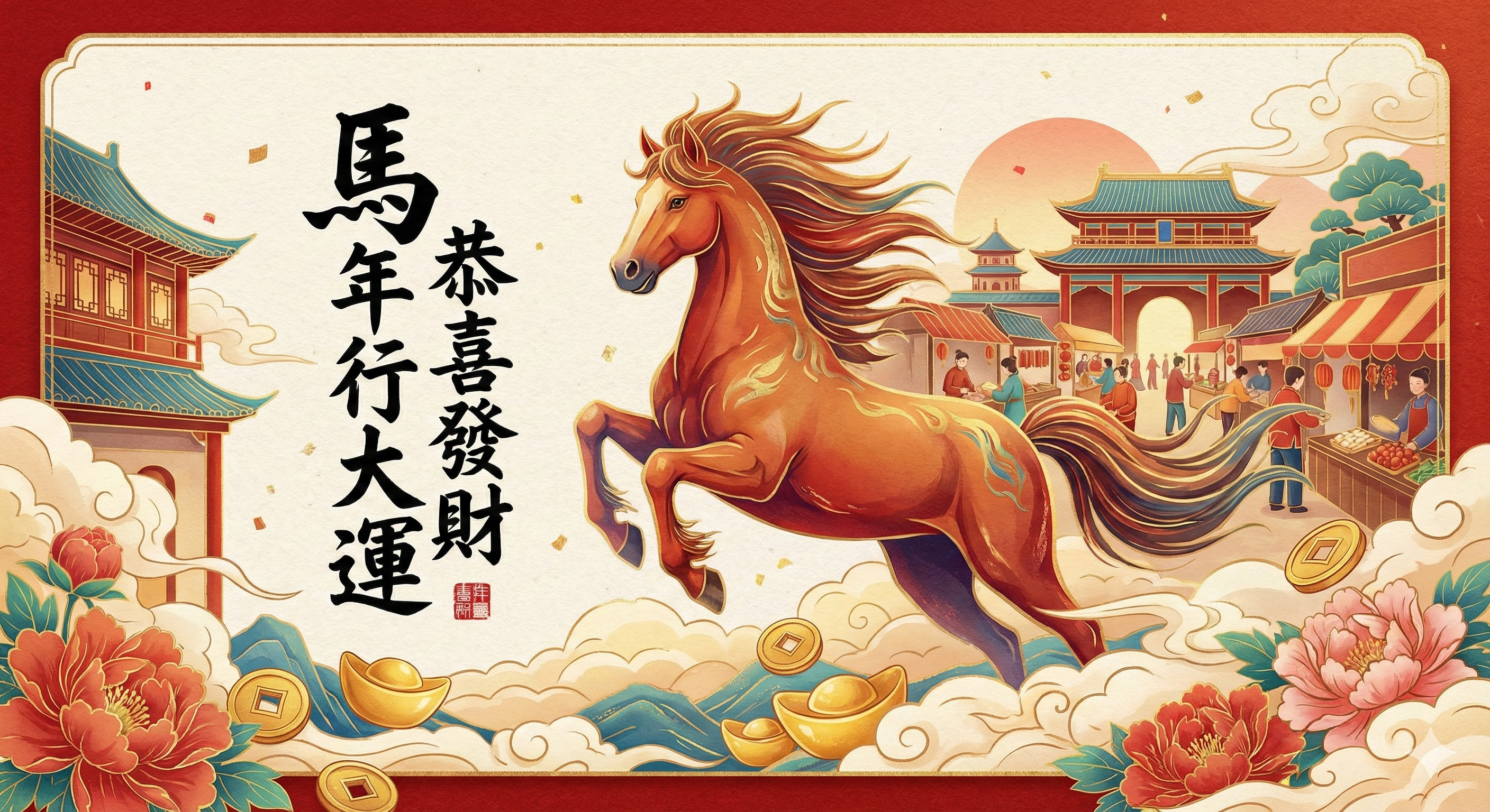 農曆新年即將到來 祝福各位馬年行大運 馬年到,祝福到。 新的一年,願大家像駿馬奔騰般充滿力量與速度,跨越挑戰、開創新局;在每一個關鍵時刻,都能穩健前行、勇敢向前。 馬象徵著毅力、耐力與突破,也代表著不斷前進的精神。願我們在這一年,心中有方向、腳下有力量,跑出屬於自己的精彩與成就。 祝福大家 新春愉快 馬到成功 財運奔騰 事業躍升 平安健康一整年